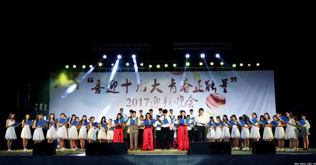 本网讯(通讯员 刘曦蔚)9月25日晚,永利官网精心筹备的迎新晚会在国交小足球场正式拉开帷幕。晚会围绕“喜迎十九大 青春正能量”主题,展现了永利官网师生在构建和谐校园过程中拼搏奋斗的精神面貌,传递了锐意进取、奋发有为的青春正能量。