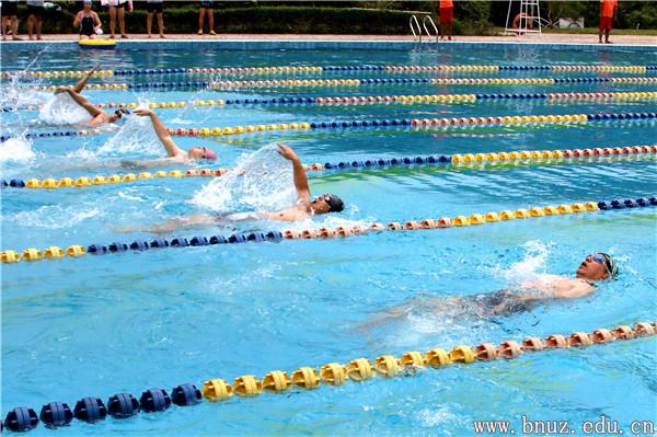 活动当日,秋风送爽。虽然气温略低,但丝毫未影响教职工参赛的热情。教职工们来到现场换上泳装后,或是压腿拉伸,或是游泳热身,现场一片热闹。随着第一声发令枪响,男子中年组50m自由泳项目率先开赛。外国语学院美国籍教师David W Koening凭借出色的游泳技能和良好的身体素质,以33秒的绝对速度优势拿下了本届比赛的第一个冠军。紧接着的男子老年组50m自由泳比赛,教学部的王大新老师宝刀不老,奋勇拼搏,以47秒97的速度夺得该项目冠军。巾帼不让须眉,女教职工的比赛同样精彩。特许经营学院于雯老师在随后的女子青年组50m仰泳和女子青年组50m蛙泳比赛中夺得双连冠。