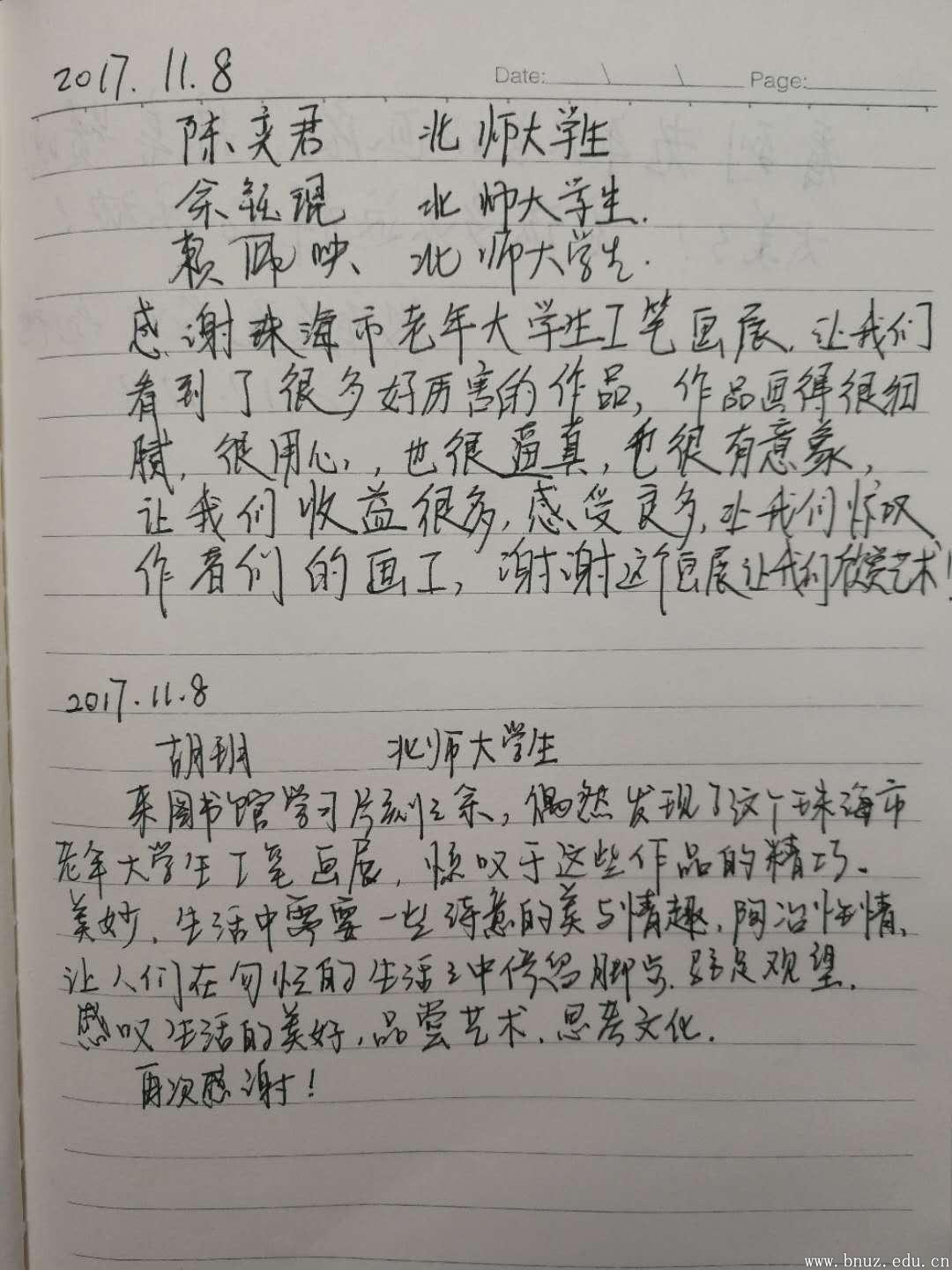 在辅导青年学生练习的同时,老年大学的师生们也在一教一学中获得了工笔画新的体验与进步。“无论年龄,只要热爱”、“很惊艳!希望北师能有更多这样的画展”、“敬佩各位老师为国家奉献青春,退休后不忘初心,坚持学习,值得我们去学习!”同学们在留言本上一句句情真意切的感叹,无不是对老年大学师生的肯定,更加促进了老年大学师生们作画的积极性,给予他们极大的精神动力和支持。