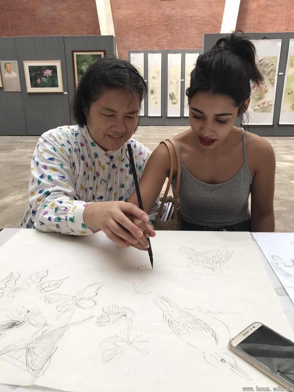 “有的画名字像小朋友,不像老年人,但画的真的不错”、“我不知道怎样画画,但我觉得很美”、“谁知道这些画已经画了几遍了”这些稍显稚嫩、略微生硬的汉语表达,正是来自巴基斯坦的留学生观看画展后,在留言本上写下的留言。富有东方艺术气息的工笔画不仅吸引了留学生,更是吸引了永利官网外国语学院日本外教特意前来观看画展。“每天都会有学生在参观完画展后来学习体验,其中也不乏留学生和外籍教师。有两位日本老师十分喜欢我们的画,带着学生翻译,前来与我们交流画画经验,和我们的作者在画前一起合影留念。”负责此次画展的老年大学李红耘老师兴奋地说道。
