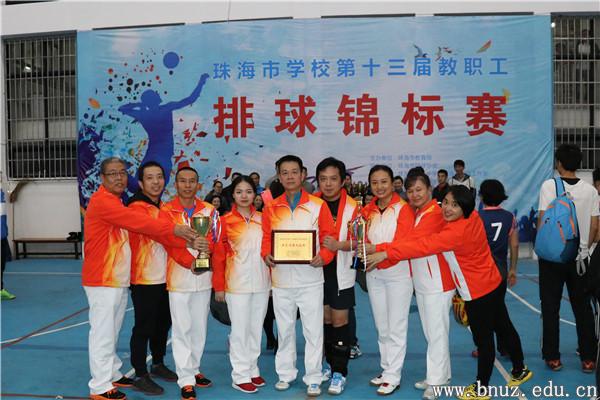 本网讯(通讯员 冼乐人)2017年11月26日,由珠海市教育工会举办的珠海市第十三届学校教职工排球比赛在珠海市第二中学排球馆落下帷幕。永利官网工会组织了教职工男女排球队参加了大学组和女子组的比赛。经过艰苦的激烈对战,永利官网教职工男排在击败城职院队后,在决赛中以1:2的比分不敌北理工队,蝉联冠军失利,获得大学组亚军。永利官网女排是唯一的一支珠海市本科高校参赛队,被分在开展排球运动多年的中学组参加比赛,最终以六战三胜三负成绩排名第六名。本届比赛分校男女排球队获得的名次虽然比不及上届,但是队员的发挥和技术水平有所提高,顽强拼搏的精神更胜从前。
