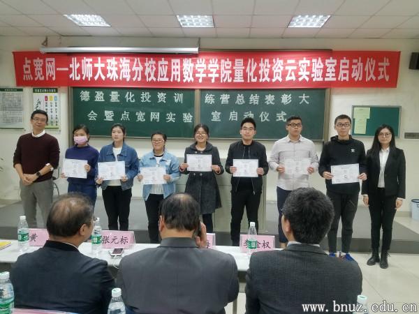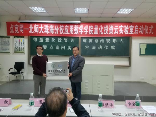 本报讯(通讯员 刘冰)2017年12月27日下午,“德盈”量化投资训练营总结表彰大会暨点宽网实验室启动仪式在丽泽楼C106举行。参加本次大会的嘉宾有量化投资训练营主讲教师张元标博士,点宽网络科技有限公司董事长黄嵩先生、总经理徐辣女士、应用数学学院院长米洪海老师、副院长李金权老师、金融数学与金融工程系主任胡春华老师以及参加此次训练营的一百多名学生。