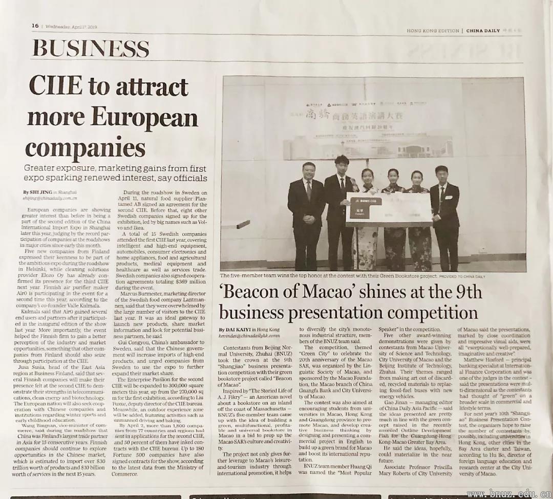 澳门“商骄”商务英语演讲大赛由亚太传播交流协会组织发起,是澳门本土开创的年度英语演讲大赛,已成为澳门一项品牌赛事,备受社会关注。演讲内容以推广粤港澳地区特色为主题,涵盖广泛的商务内容,包括创新计划、市场分析、销售策略以及商业模式等。今年以“Green City”为主题,要求参赛队伍通过商业项目设计进行演讲,该赛对选手的英语能力和商业策划知识的要求都比较高。