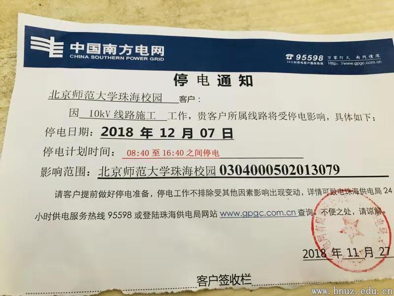 受上述施工影响,永利官网京师家园将会停电,计划停电时间为2018年12月7日(周五)08:40-16:40。请校内各相关单位提前做好停电准备工作,期间所产生的不便,敬请谅解。
